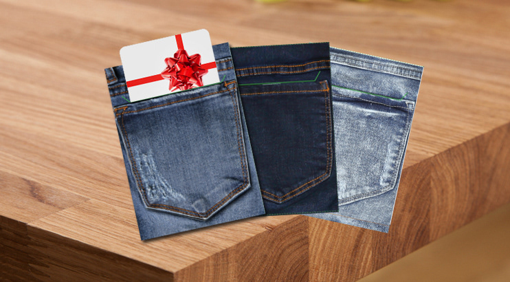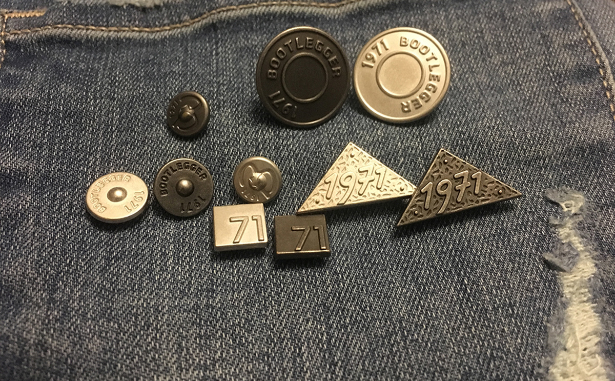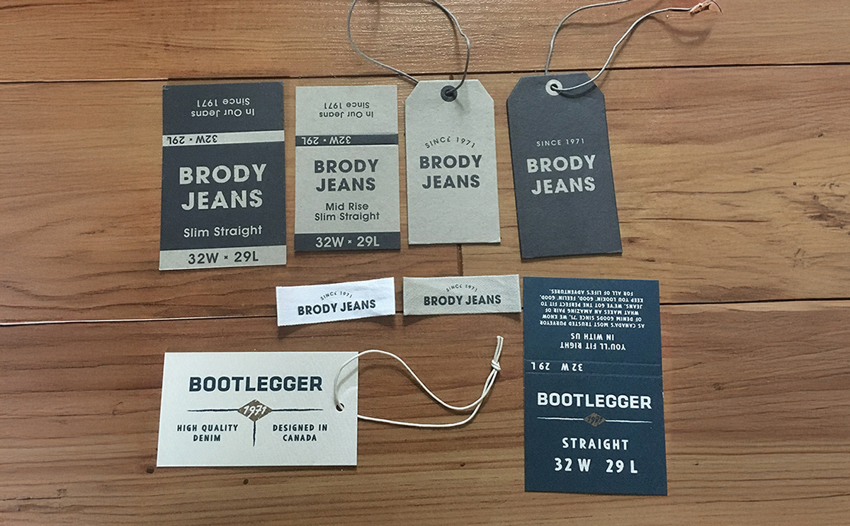 Bootlegger jeans hardware, tags, bag, and gift cards